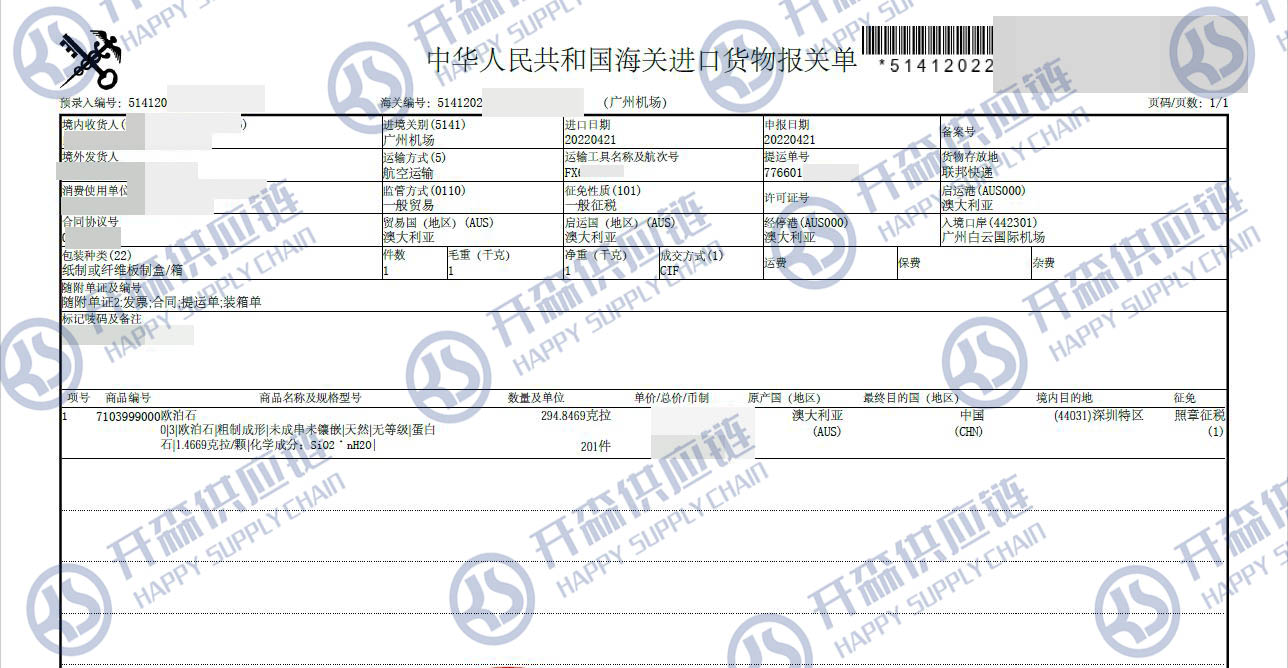 一、澳大利亞歐泊石進(jìn)口報(bào)關(guān)代理案例詳情