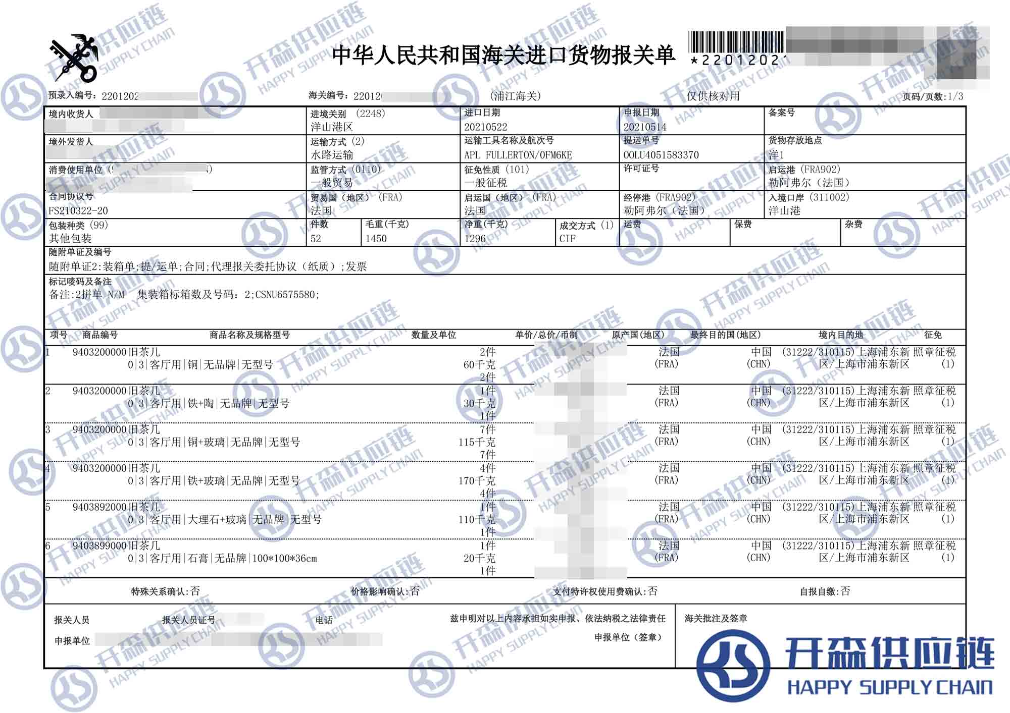 【導讀】您正在閱讀的是關于法國二手舊茶幾家具進口報關代理案例【經(jīng)典案例】的內容,本文由開森二手家具進口報關代理小編整理編寫;