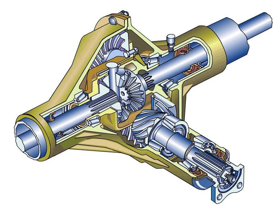 驅動橋是位于傳動系末端能改變來自變速器的轉速和轉矩,并將它們傳遞給驅動輪的機構。驅動橋一般由主減速器、差速器、車輪傳動裝置和驅動橋殼等組成,轉向驅動橋還有等速萬向節(jié)。另外,驅動橋還要承受作用于路面和車架或車身之間的垂直力,縱向力和橫向力,以及制動力矩和反作用力。